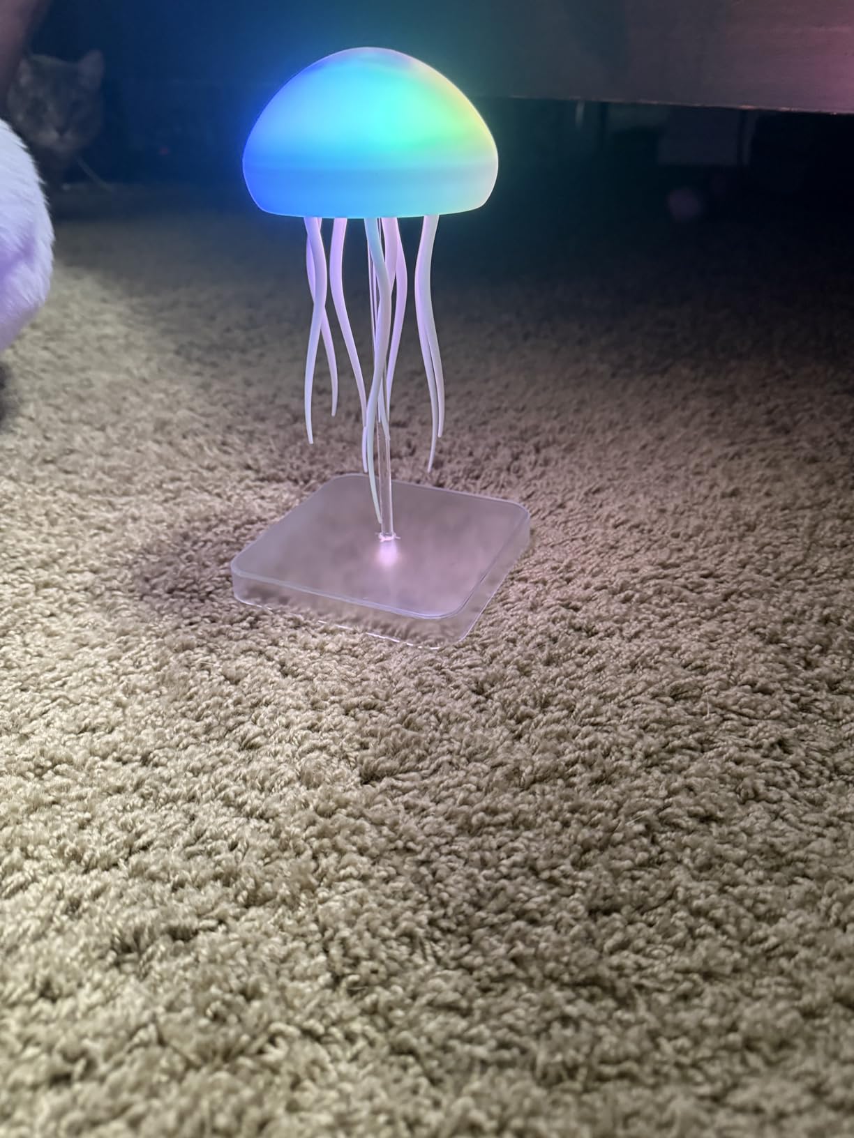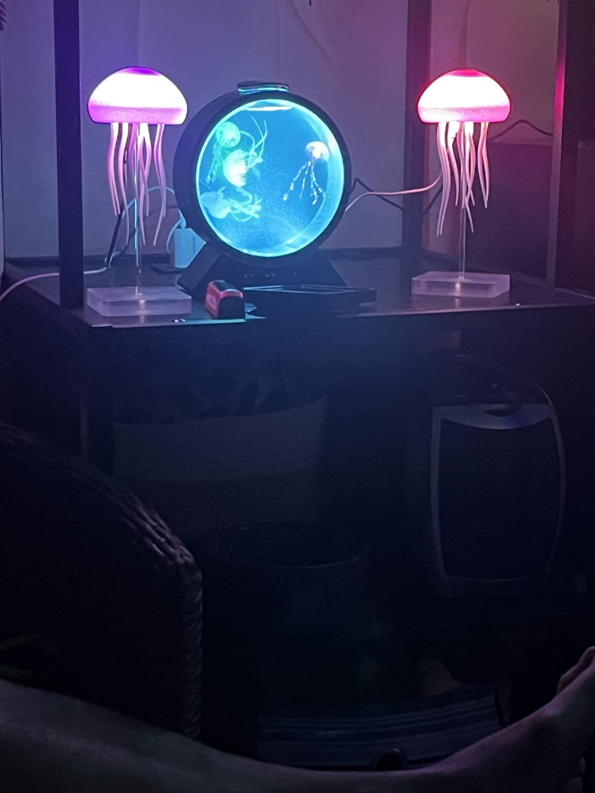 Çok tatlı bir lamba. LED renkleri çok canlı ve farklı ayarları ile her oda için mükemmel. Yavaşça sallanan küçük tentaküllerini izlemek çok rahatlatıcı.